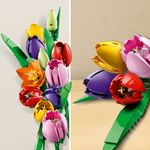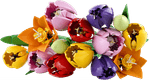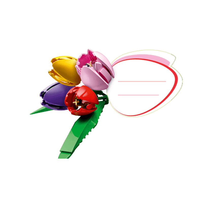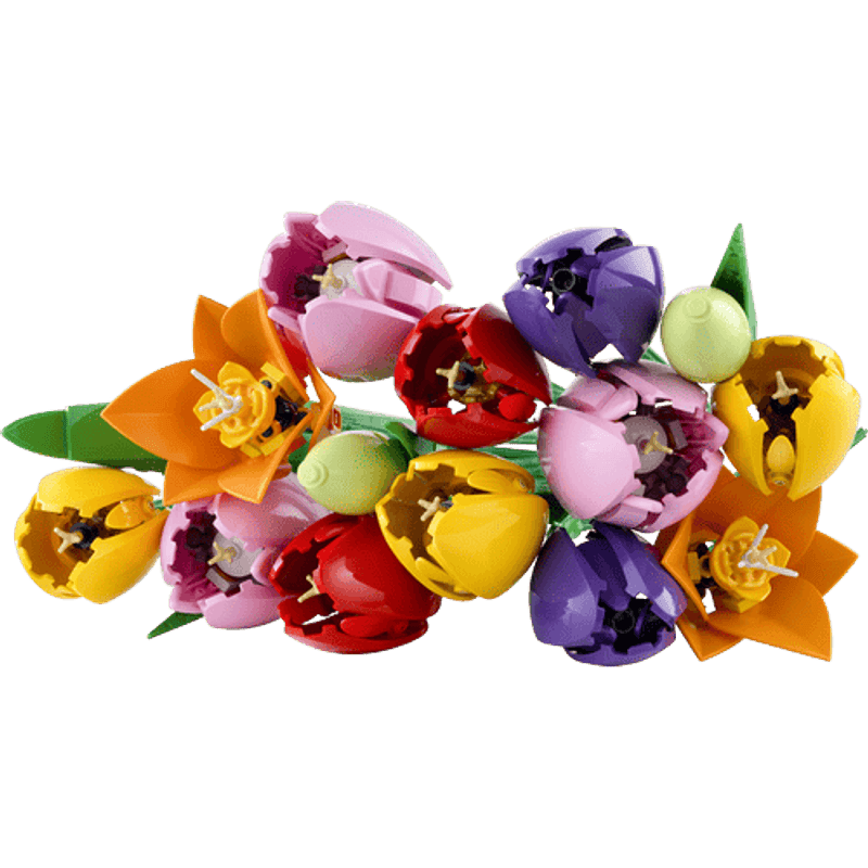Siente crecer tu creatividad mientras creas un vistoso ramo de tulipanes LEGO®. Construye cada flor y admira el realismo de sus detalles y colores: descubrirás vibrantes capullos verdes, tulipanes morados cerrados y tulipanes rojos, amarillos y rosas abiertos, además de hojas verdes y tallos ajustables. Cuando hayas terminado de construir el ramo, exhíbelo con orgullo como decoración floral.
