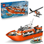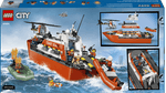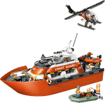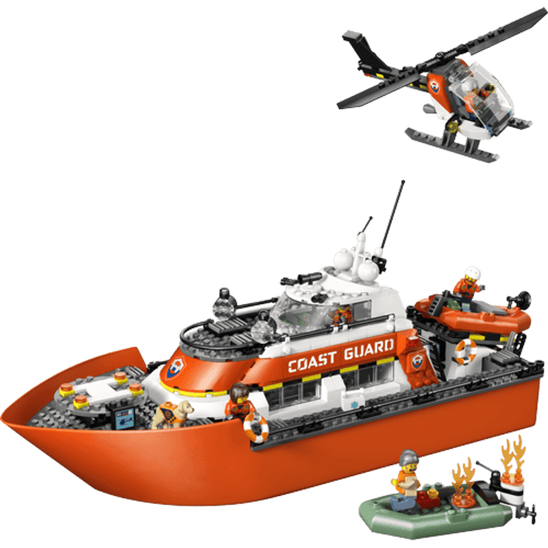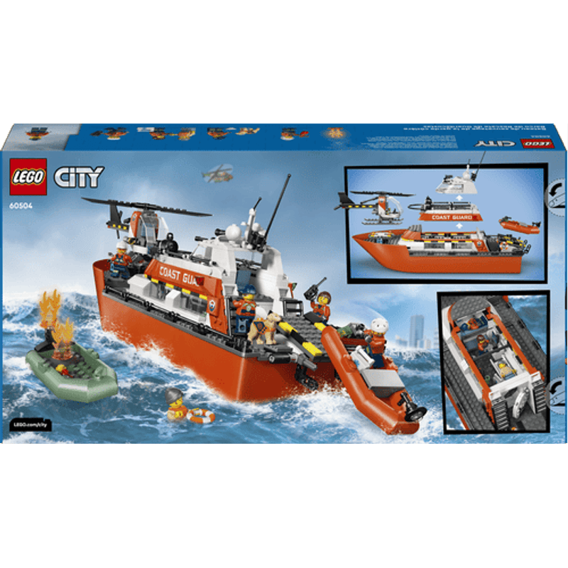 Pon rumbo a altamar a bordo del impresionante barco de guardacostas. ¡Este centro de rescate flotante está repleto de funciones! Únete a la tripulación en el puente del capitán, prepara la comida en la cocina o relájate debajo de la cubierta en los acogedores camarotes. Cuando llegue el momento de actuar, despega en el helicóptero y lanza la lancha. ¡Te espera un océano de aventuras en LEGO® City!