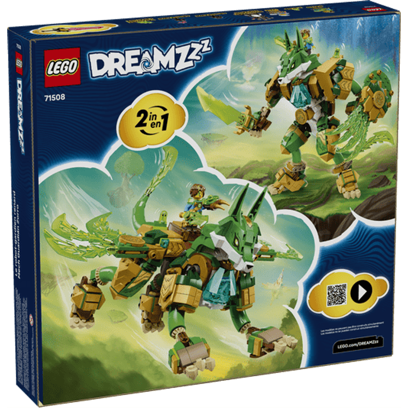 ¡Únete a Mateo, Izzie y Z-Blob en una épica batalla contra el Emperador de las Pesadillas! Elige qué quieres crear: un increíble zorro de juguete en forma de poderoso Mech Zorro parado en 2 patas y armado con espada y escudo, o un majestuoso Guardián Zorro de 4 patas provisto de alas. También hay 3 minifiguras, 2 figuras de Engendros y una figura de una Criatura del Tesoro verde coleccionable.