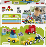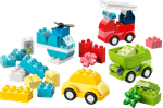 ¡Abróchate el cinturón y llena de creatividad el tiempo de juego con este versátil set de construcción de vehículos! Anima a tu bebé a dar forma a un auto, un camión de volteo, un camión de bomberos y un helicóptero, y luego a crear aún más vehículos inspirándose en las instrucciones, los bricks extra… ¡y su increíble imaginación! ¿Un camión con 3 bases rodantes? ¡Sí! ¡Todo se vale!