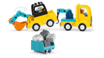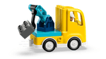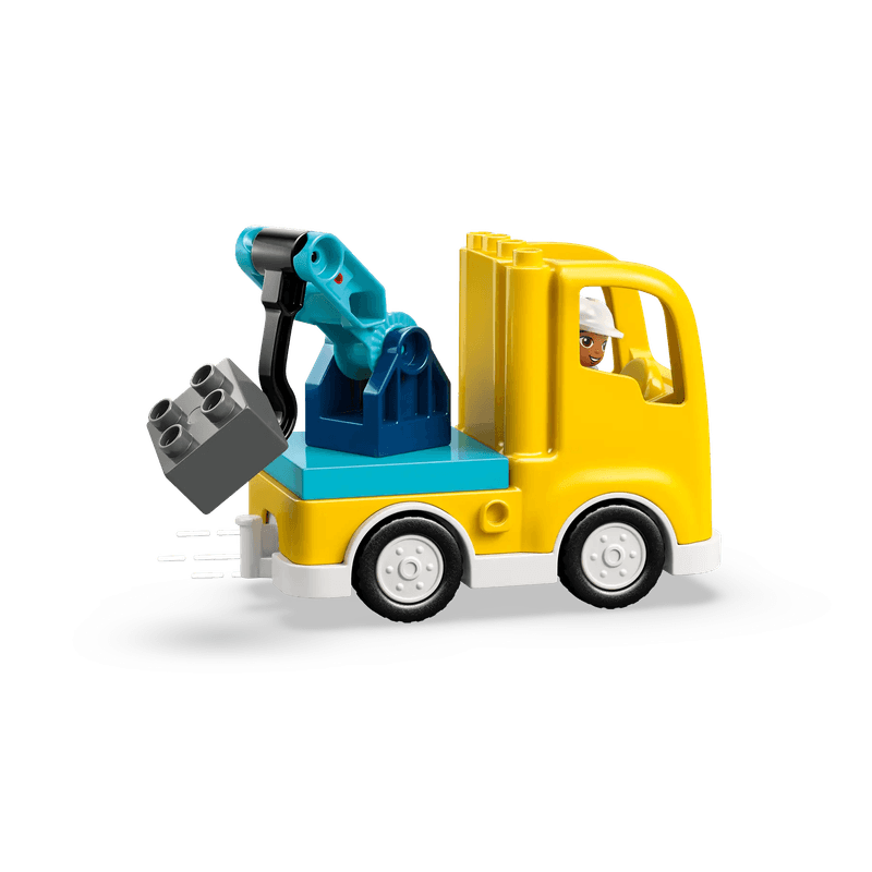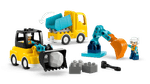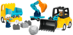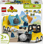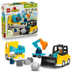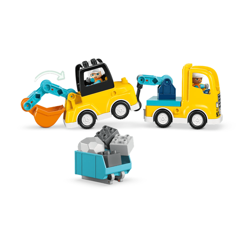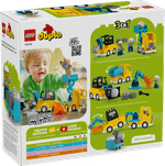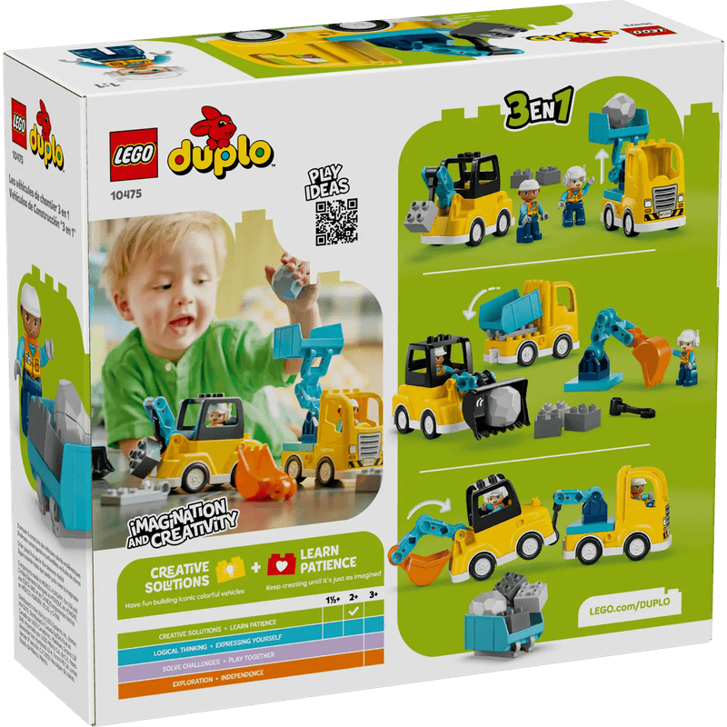 Ayuda a tu bebé a desarrollar sus habilidades creativas con este divertido set de construcción. Sus 22 bricks y elementos se combinan para crear 3 pares de vehículos. Los pequeños constructores podrán construir una cargadora y un camión de volteo, una excavadora y un camión grúa o un elevador de tijera y un camión grúa. Con las 2 figuras, ¡los preescolares darán vida a un sinfín de historias!