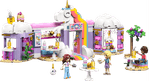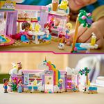 ¡Cupcakes, arcoíris y brillito de unicornio! Todo eso lo encontrarás en la Cafetería Sueños de Unicornio LEGO® Friends. Ayuda a Iza, la propietaria, a preparar dulces y luego colócalos en el exhibidor giratorio de la vitrina. Acompaña a Paisley y Aliya a elegir cupcakes, galletas, donas y jugos. Después, ve con las amigas a la zona de mesas al aire libre, donde pueden sentarse a merendar juntas.