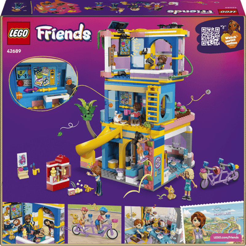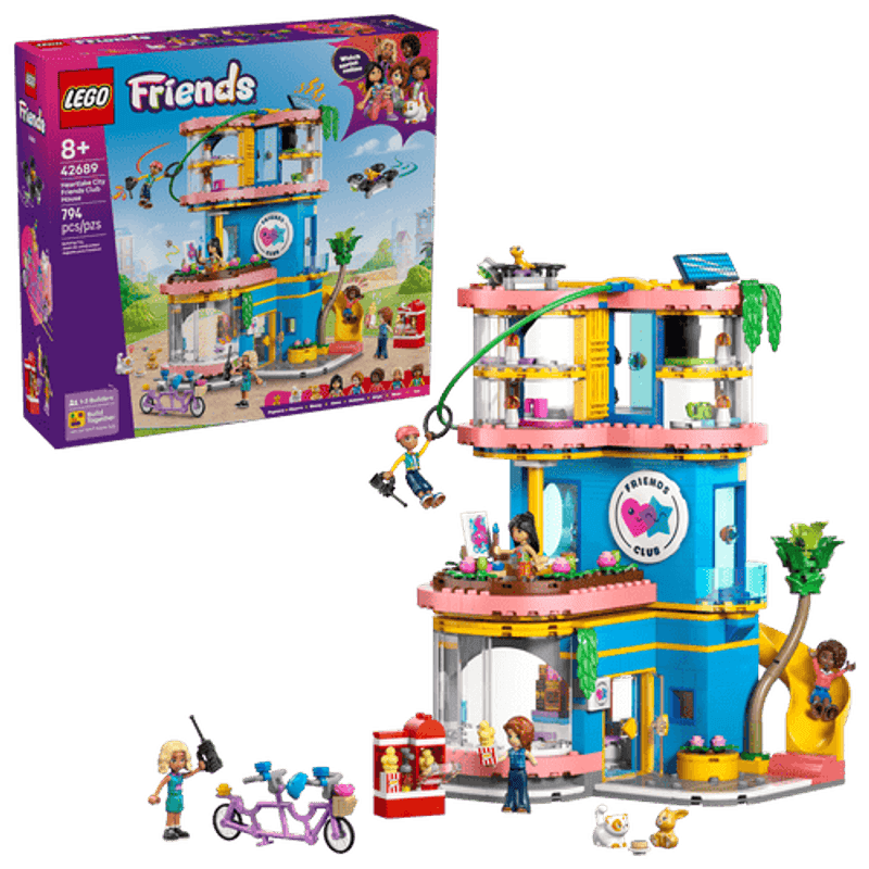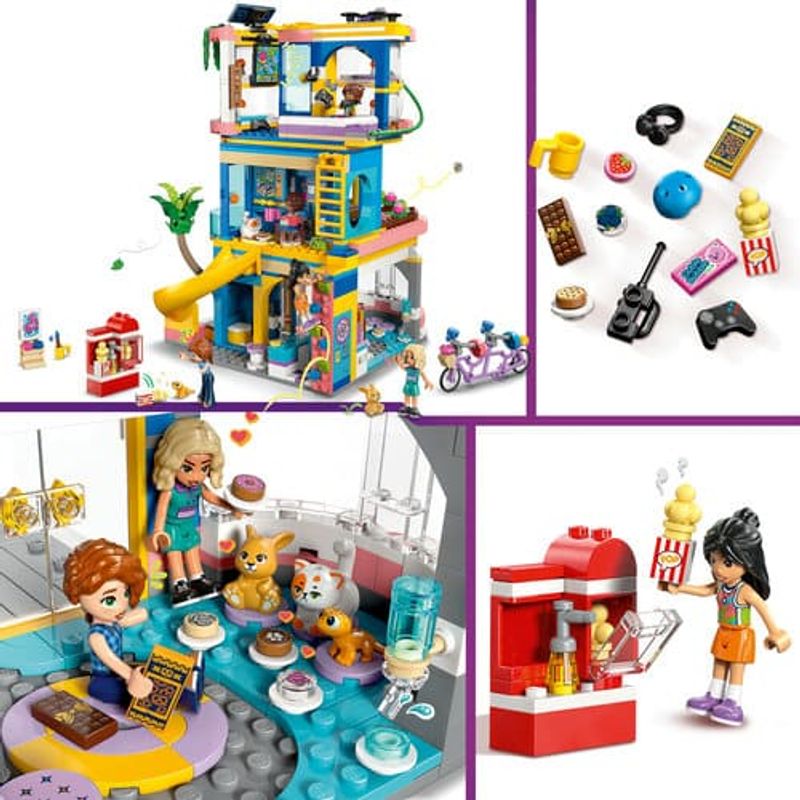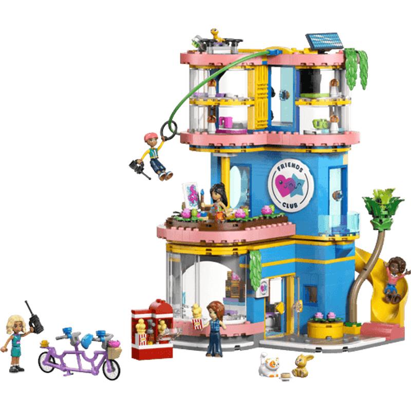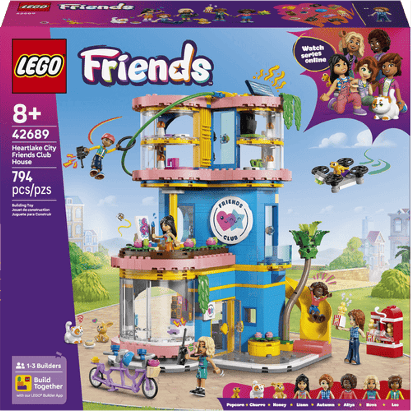 ¡Vive aventuras y cumple divertidas misiones en el Club Friends HLC! Disfruta de las actividades con Autumn, Nova, Aliya, Leo, Liann y sus mascotas Churro, Honey y Popcorn. Prueba la tirolesa, el resbaladero y el muro de escalada. Resuelve un misterio con una computadora o haz refrigerios. Y, con el modo Construye en Compañía de la app LEGO® Builder, tus amigos y familiares pueden unirse a la diversión.