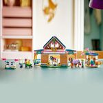 Aprende a montar como una estrella en el Establo y Academia de Equitación LEGO® Friends. Acompaña a Liann y Aliya en sus clases con la instructora Cindy. Ensilla a los 2 caballos y practica el salto de obstáculos. Haz los quehaceres, como transportar paja en la carretilla o bañar a los nobles animales y darles de comer. Después de un ajetreado día, duerme en las cómodas camas que hay encima del establo.