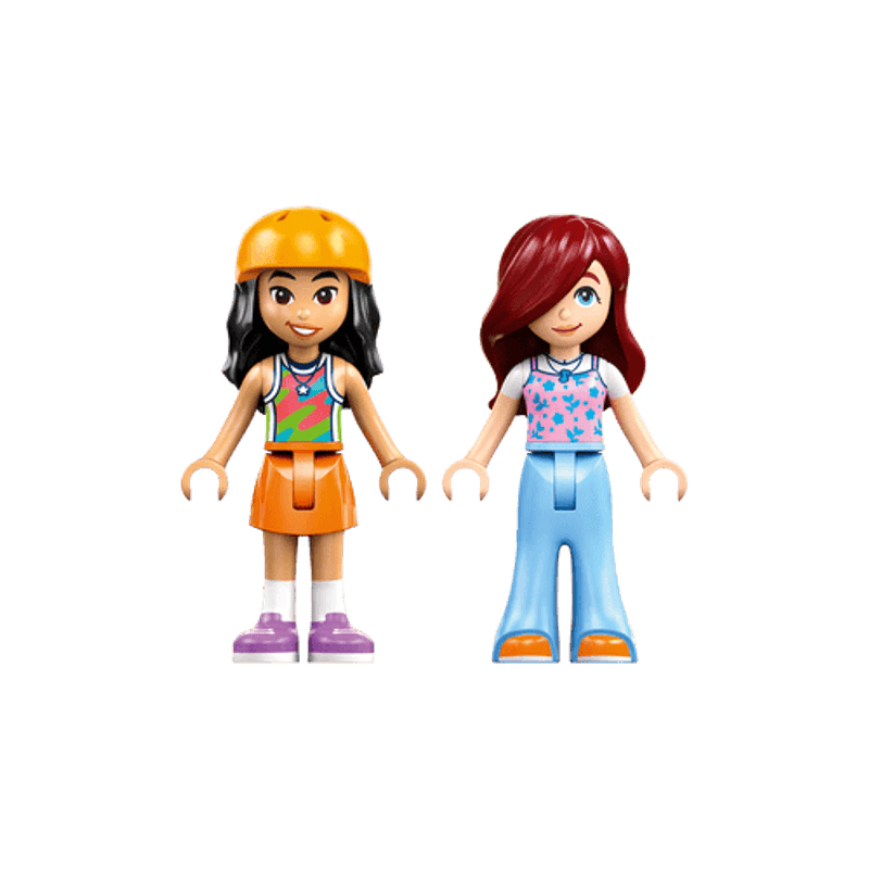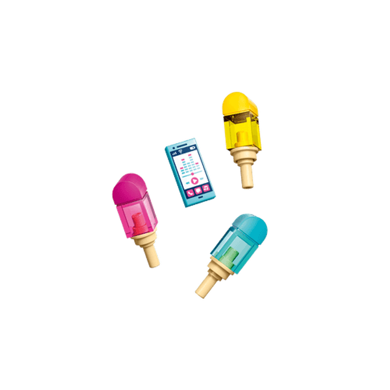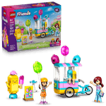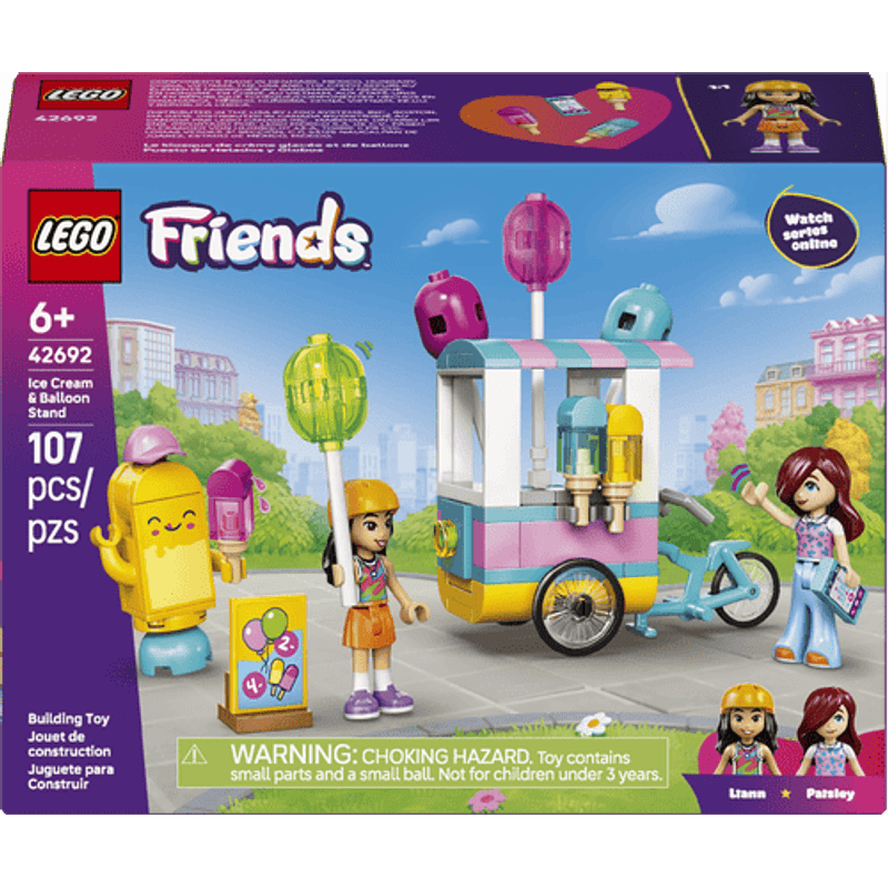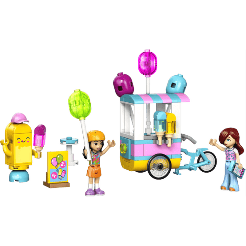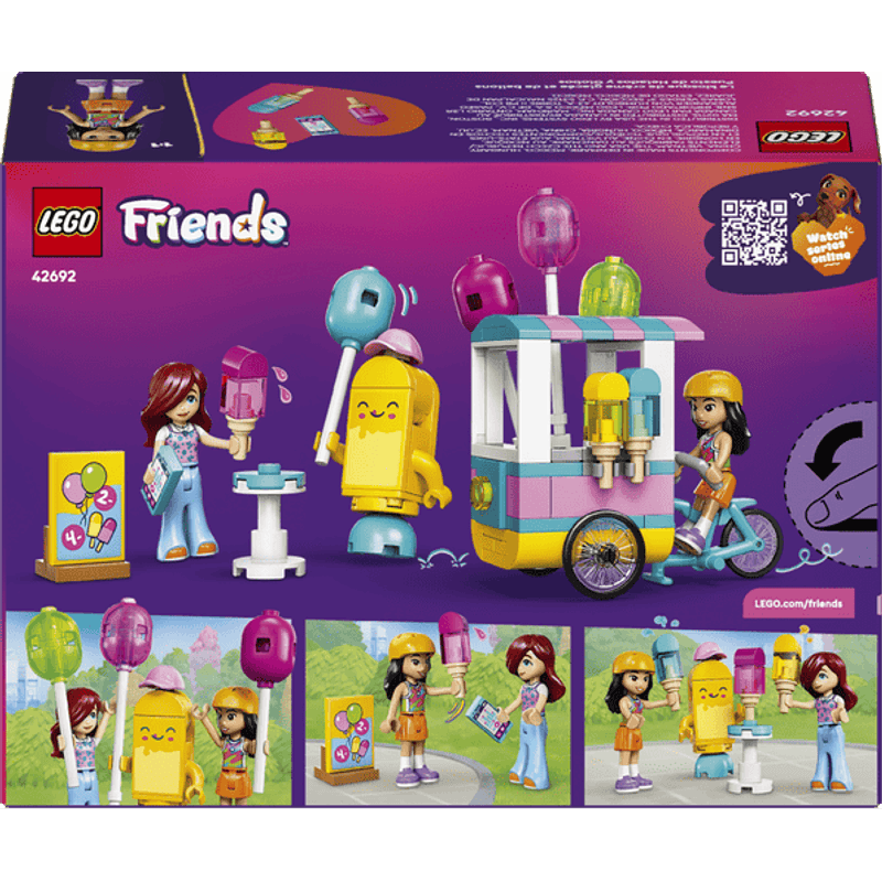 ¿Quién quiere globos y paletas heladas? Acompaña a Paisley y Liann a comprar y vender en el Puesto de Helados y Globos LEGO® Friends. Ayuda a Liann a mover la bici para colocar bien el puesto. Ahora ya pueden empezar a atender a los clientes. ¡Mira, ahí llega Paisley! ¿Cuál elegirá? Después de pagar, Paisley se acerca a la simpática mascota en forma de paleta helada y luego va a la mesa para relajarse con su amiga.