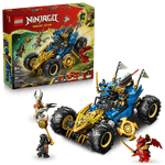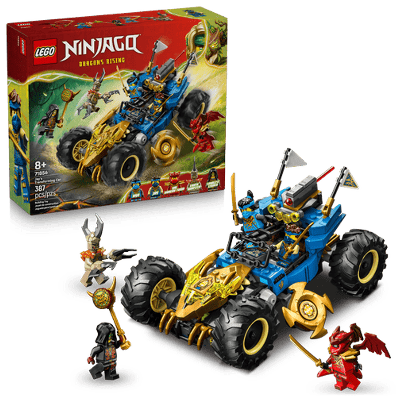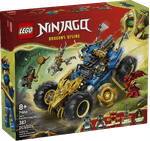 Acompaña a Jay, Nya y Kai Dragon Form a perseguir villanos por el Bosque de los Susurros. Ponte al volante del Auto Transformable de Jay y luego actívalo en modo dragón, equipado con shurikens giratorios. ¡Dispara su cañón automático para detener al Monstruo de Tierra y el líder lealista antes de que logren escapar! Los ninjas deben derrotarlos para proteger las Tierras Fusionadas.