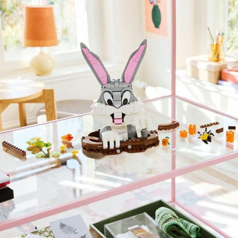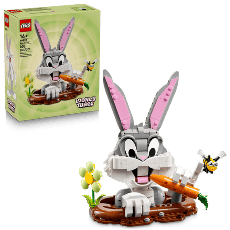 Celebra la Pascua con un estilo fantásticamente divertido construyendo este modelo de Bugs Bunny, el personaje clásico de los dibujos animados Looney Tunes™, con su característica zanahoria en la mano. Dale un toque primaveral a tu proyecto completándolo con elementos que representan una abeja y una flor. Diviértete exhibiendo al famoso y divertido Conejo de la Suerte en la pose que quieras gracias a su cabeza, dedos, brazos, manos y muñecas articulados.