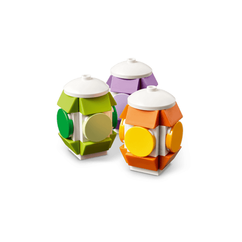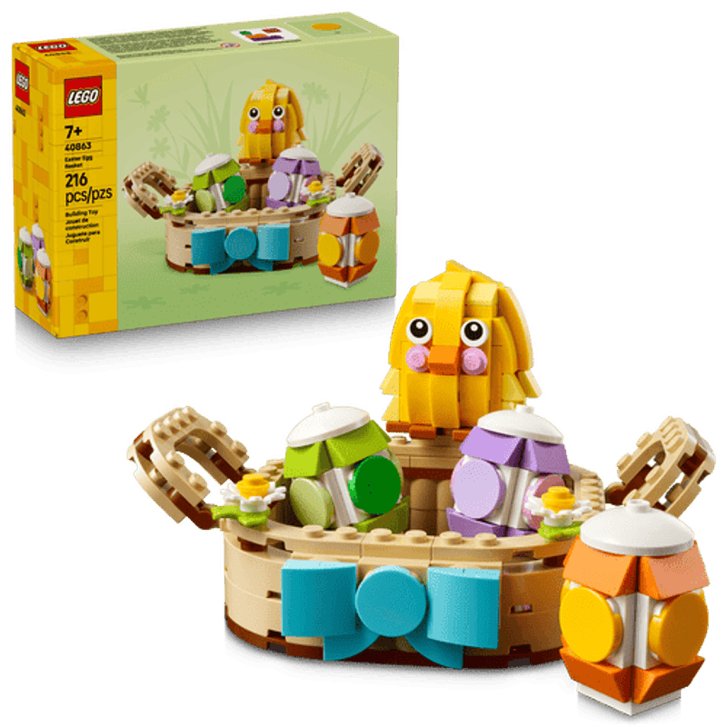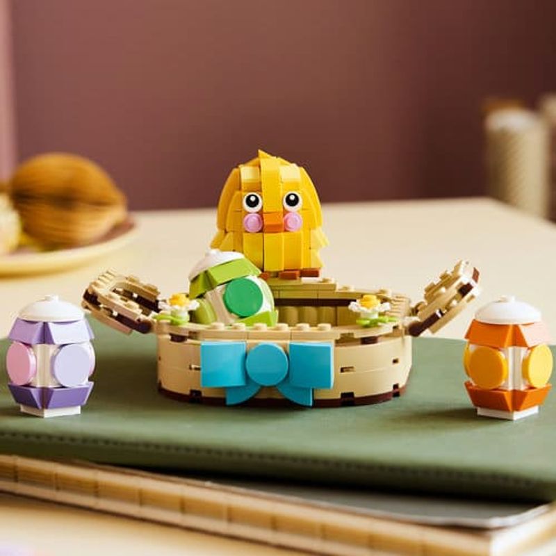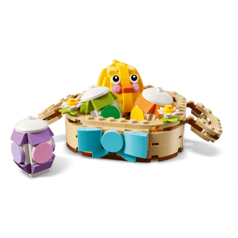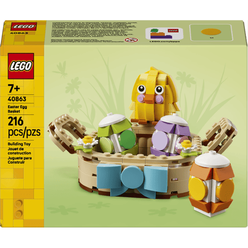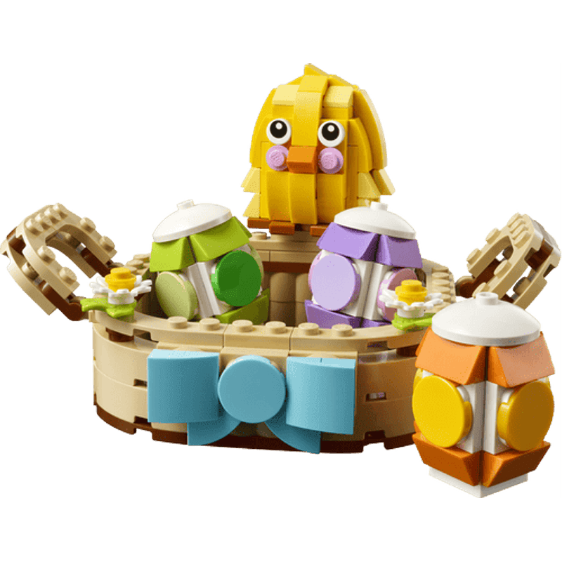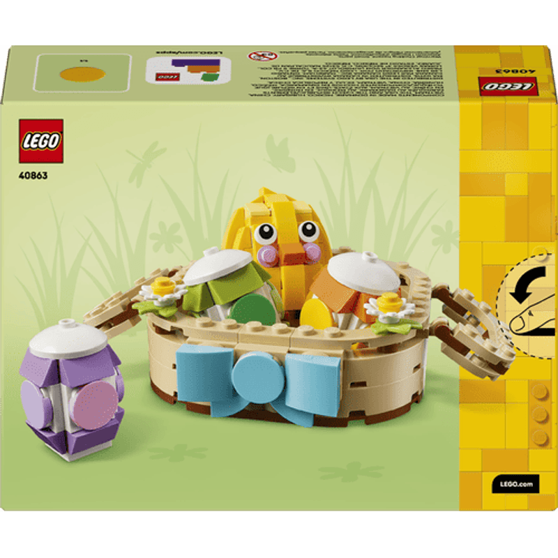 Adorna tu habitación con los tonos pastel de la primavera con esta simpática canasta de Pascua. Usa los bricks para crear la canasta y luego construye el pollito, los huevos y unas bonitas flores de primavera para ponerlos adentro. Saca los elementos para interpretar divertidas historias inspiradas en la temporada y vuélvelos a meter después en la canasta, o exhibe el conjunto en tu casa.