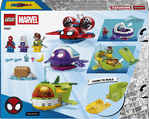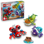 ¡Sumérgete en el mar con Spidey y Ghost-Spider para impedir que Doc Ock se robe el tesoro! Puedes desplazarte en fantásticos submarinos: el submarino cangrejo de Spidey tiene una trampa de telarañas gigante, el submarino tortuga de Ghost-Spider tiene un caparazón que se abre y el submarino ballena de Doc Ock tiene cañones… ¡y espacio para esconder el tesoro robado!