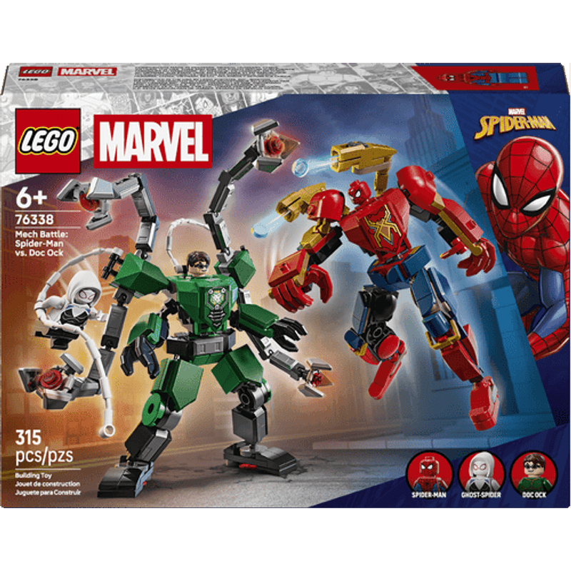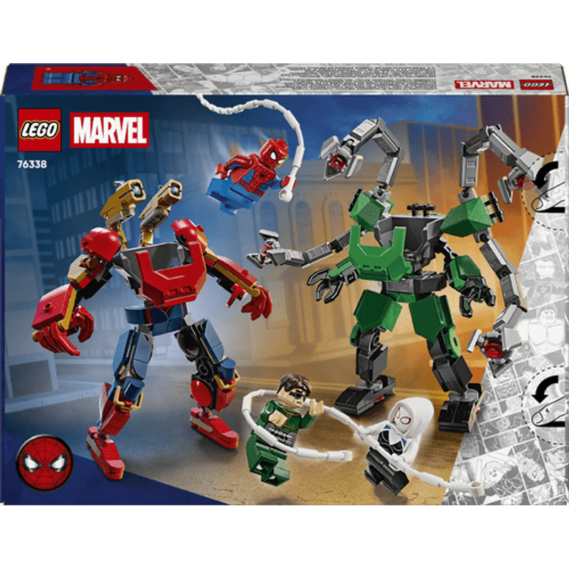 Prepárate para un duelo formidable: ¡Spider-Man y Ghost-Spider se enfrentan a Doc Ock en una batalla de armadura robótica vs. armadura robótica! Ambas armaduras giran, se mueven y adoptan imponentes posturas. ¿Logrará el disparo del cañón de Iron Spider hacer que Doc Ock se retire? ¿Podrá Ghost-Spider enredar los tentáculos de Doc Ock? ¡Tú decides cómo termina este legendario combate!