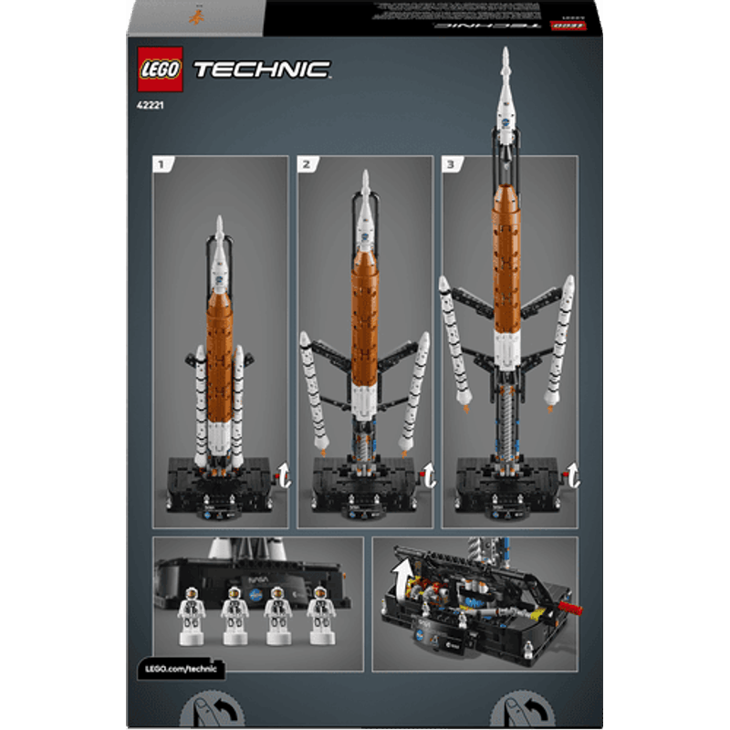 Recrea la emoción del lanzamiento de un cohete con esta versión construible del sistema NASA Artemis. Luego de unir las piezas, gira la palanca para contemplarlo en las 3 fases de vuelo: listo para despegar, desacoplado de los propulsores de combustible sólido y desacoplado de la etapa central. ¡Exhibe tu modelo con las 4 nanofiguras de astronautas hasta la siguiente misión!