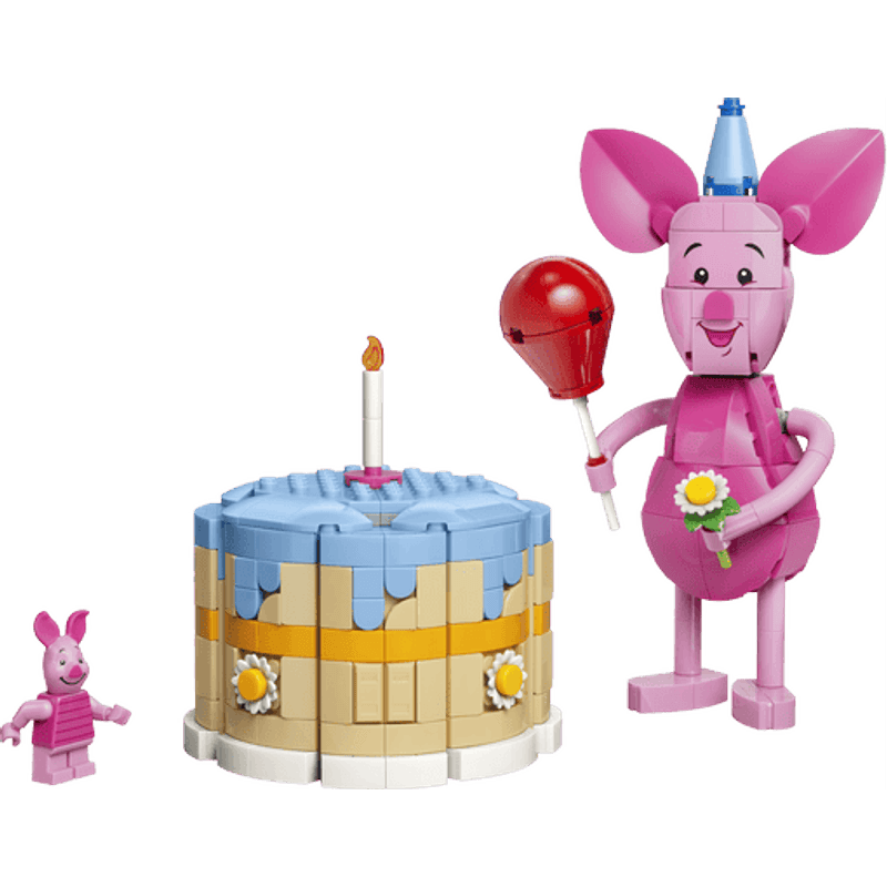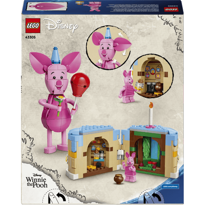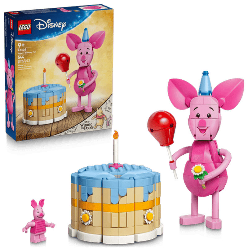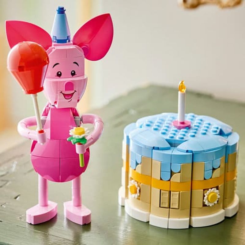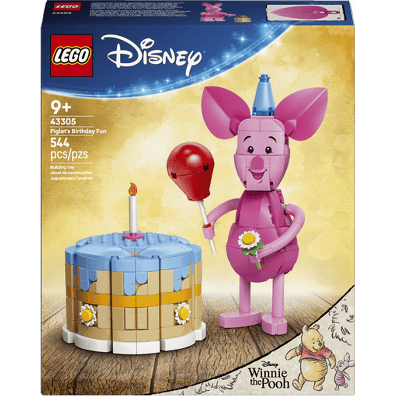 ¡Es hora de disfrutar de un pastel de cumpleaños con Disney Piglet! Celebra el centenario de Winnie the Pooh con Piglet en este set construible que incluye un pastel decorado y diversas sorpresas. Ayuda a Piglet a prepararse, ponle el gorro de fiesta y también un globo y flores en las manos. Abre el pastel: ¿qué habrá adentro? ¡Es la casa de Winnie the Pooh, el Bosque de los Cien Acres y algo más!