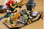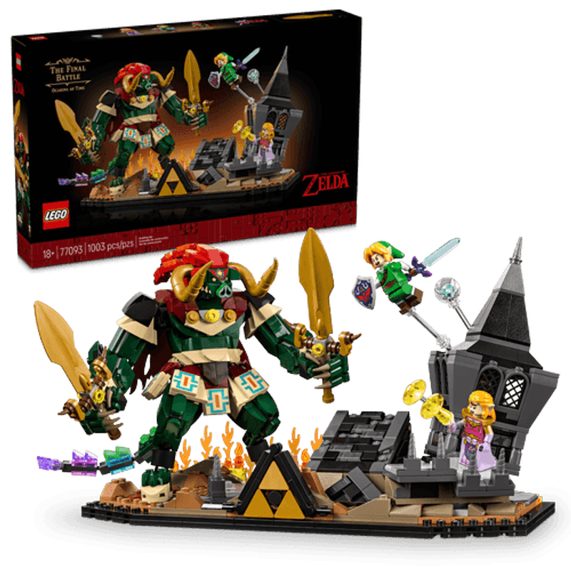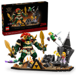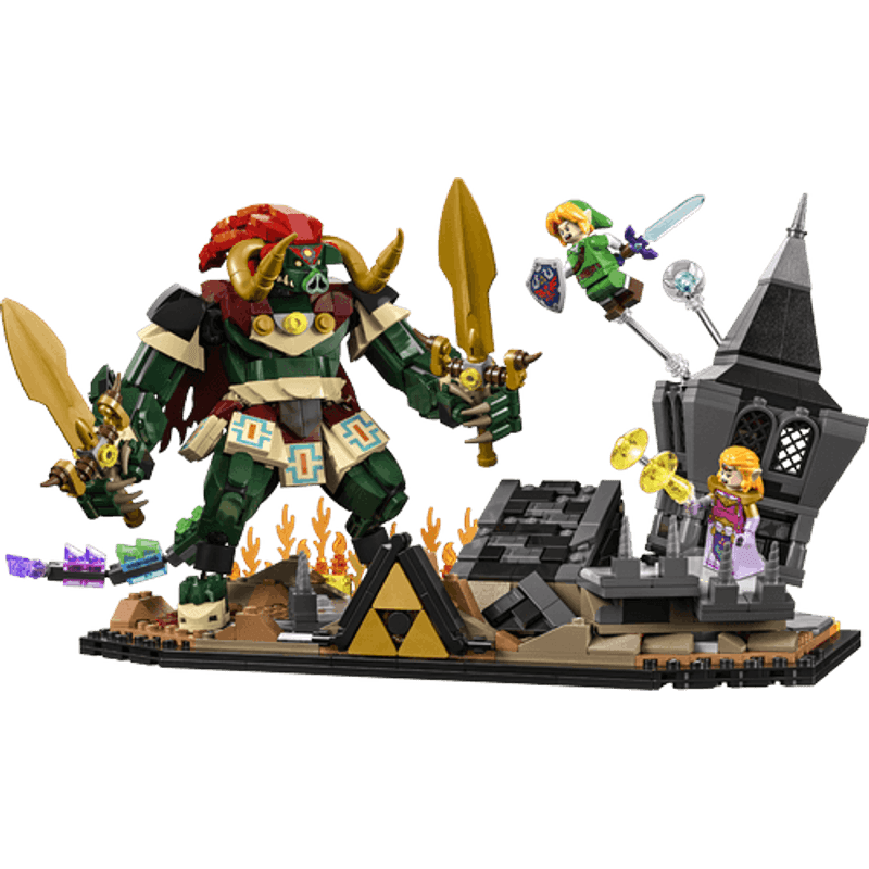 Construye este detallado set basado en el combate final de The Legend of Zelda™: Ocarina of Time™. Únete a Link, Zelda y Navi en su enfrentamiento con Ganon, el Rey Demonio, y una aparición de Ganondorf, en las ruinas del castillo de Ganon. Exhibe el modelo con elementos del juego, como la Espada Maestra, un Escudo Hyliano, el Martillo Megatón y el poder de Zelda, representado por ondas de luz.